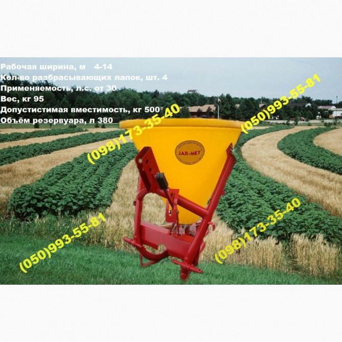 Розкидач добрив Jar-Met 1000л + кардан (Польща) Розкидач добрив Jar-Met є передовим обладнанням для сільськогосподарського виробництва, що виробляється в Польщі. Ця модель є лідером на ринку України завдяки своїм високим технічним характеристикам та надійності в роботі. Технічні характеристики: - ...