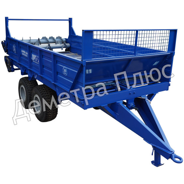 **Розкидач органічних добрив ПРТ-7 для транспортування та внесення твердої органіки в ґрунт** Розкидач органічних добрив ПРТ-7 є важливим інструментом для транспортування та поверхневого внесення твердої органіки в ґрунт. Він також ідеально підходить для перевезення кормів та інших вантажів зі звор...
