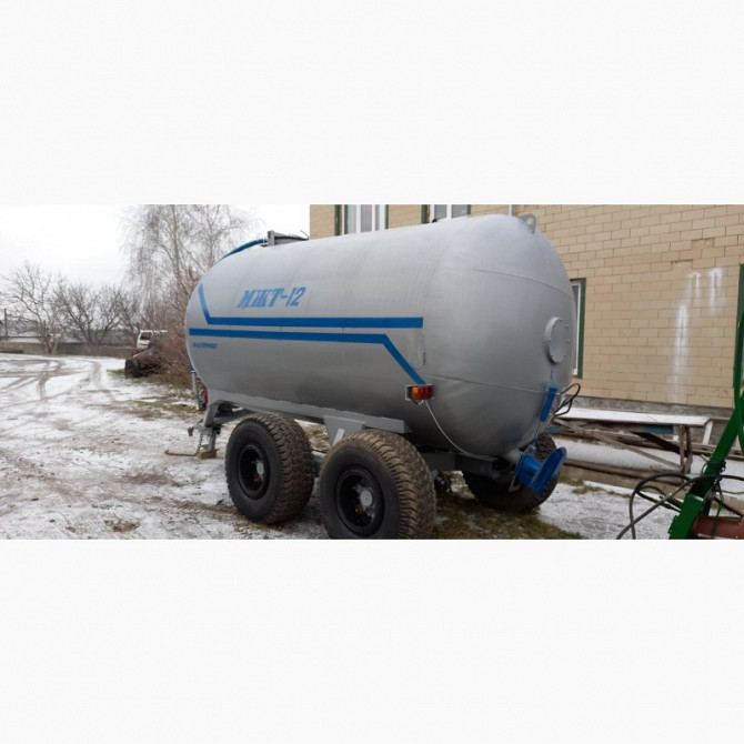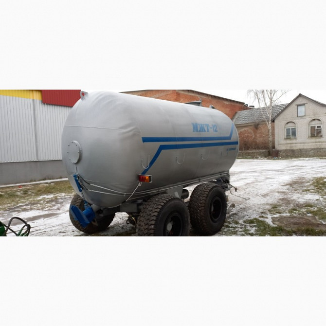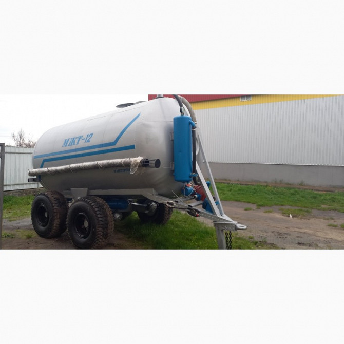 Бочка МЖТ-12 є універсальним засобом для зберігання та транспортування різних рідких речовин, таких як вода, гній або рідини для пожежогасіння. Вона виготовлена з високоякісного земностійкого матеріалу товщиною 8 мм і комплектується вакуумною установкою, гальмами, карданним валом (ВОМ), розкидачем г...