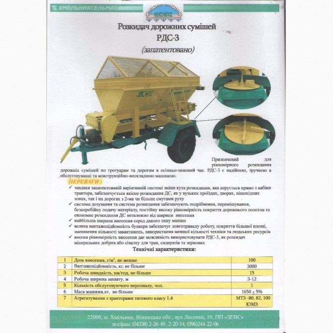 Розподільник дорожніх сумішей РДС-3 призначений для рівномірного розкидання дорожніх матеріалів по тротуарах та дорожньому покриттю протягом осінньо-зимового періоду. Цей пристрій є надійним, легким у обслуговуванні та простим у конструкції. Основні технічні характеристики включають систему дозуван...