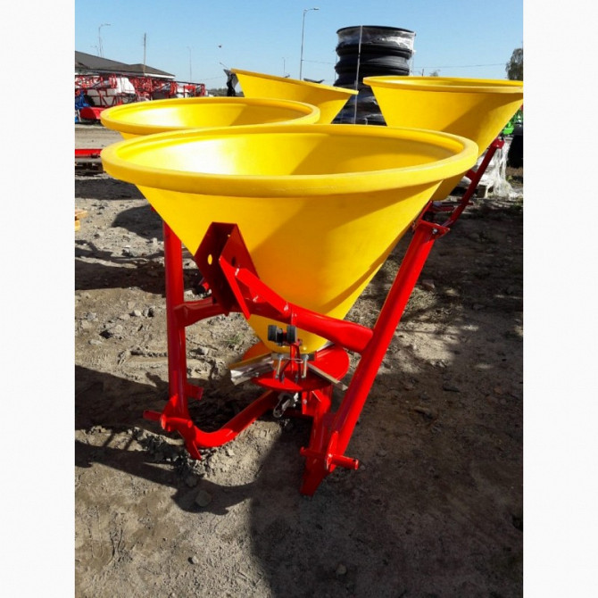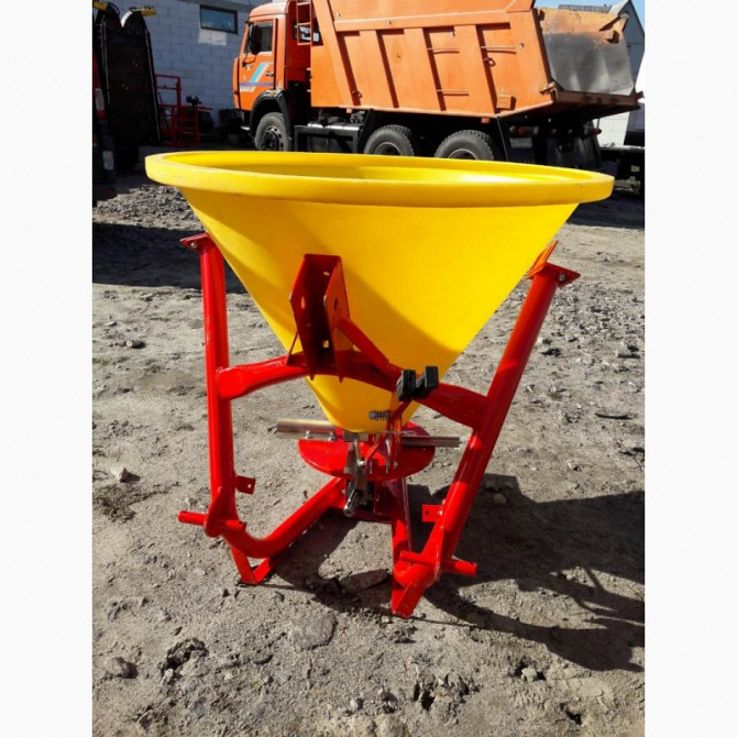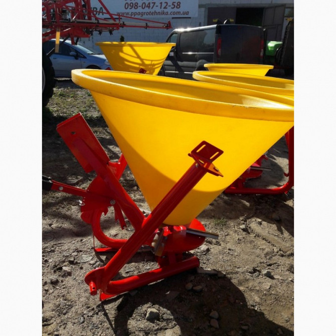 **Технічний опис розкидача мінеральних добрив РУМ на 500, 650, 1000 кг** Розкидач мінеральних добрив РУМ призначений для застосування на сільськогосподарських угіддях, таких як поля, сади, садибища, для підвищення родючості ґрунту. Він оснащений пластиковою і металевою лійкатарілкою на 4 або 6 лопа...
