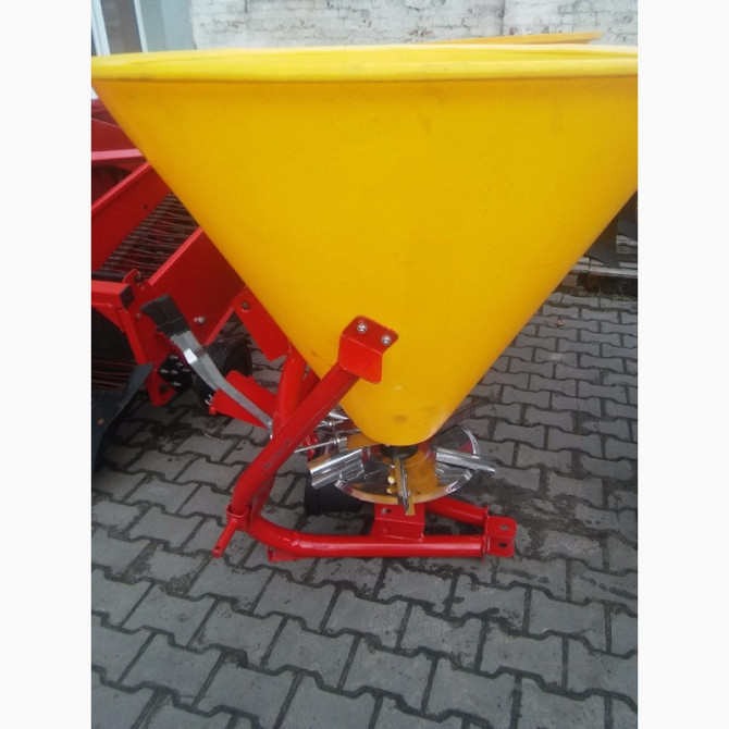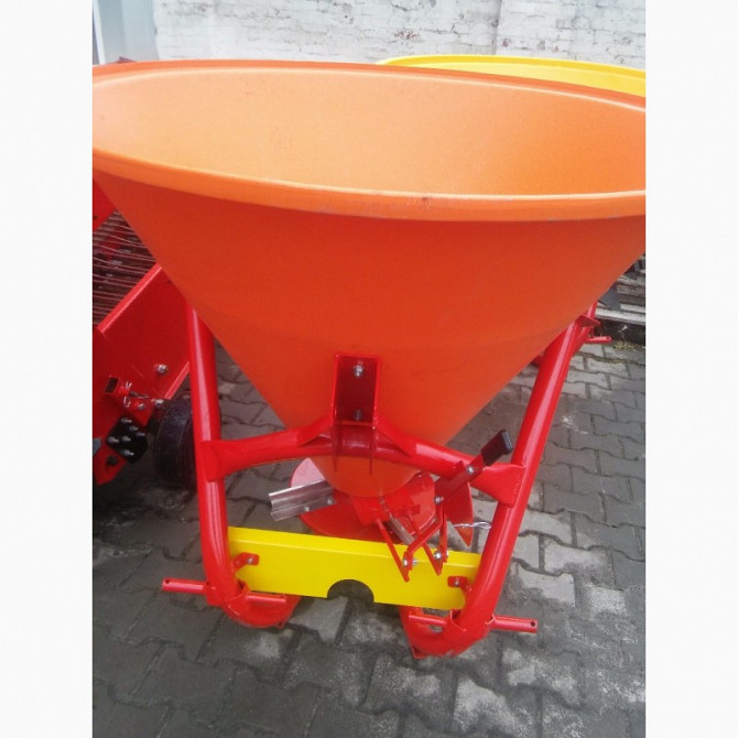 **Технічний опис розкидача міндобрив** Розкидач міндобрив призначений для рівномірного розподілу добрив на полі площею від 300 до 650 кг від виробників з Польщі та України. Виготовлений із якісного пластику та надійного металу, цей розкидач оснащений металевими та нержавіючими тарілками з оцинкован...