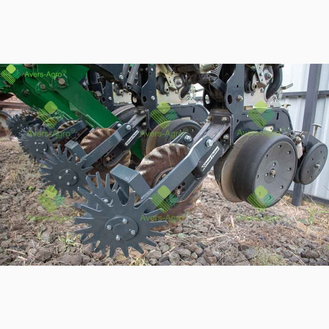 **Очиститель ряду дводискововий на сівалку KINZE 3600** Очиститель ряду на сівалку KINZE 3600 є важливою деталлю, яка призначена для ефективної очистки борозни шириною від 2 до 4 см від рослинних залишків перед сіючим диском. Цей пристрій дозволяє забезпечити рівномірне посівання культур, таких як ...