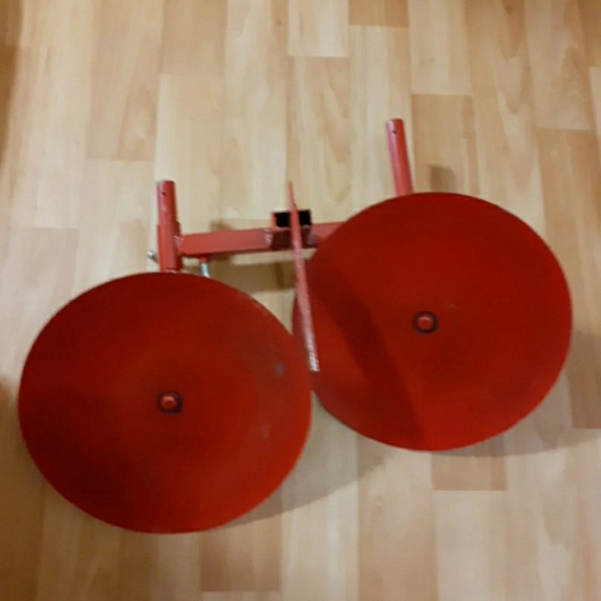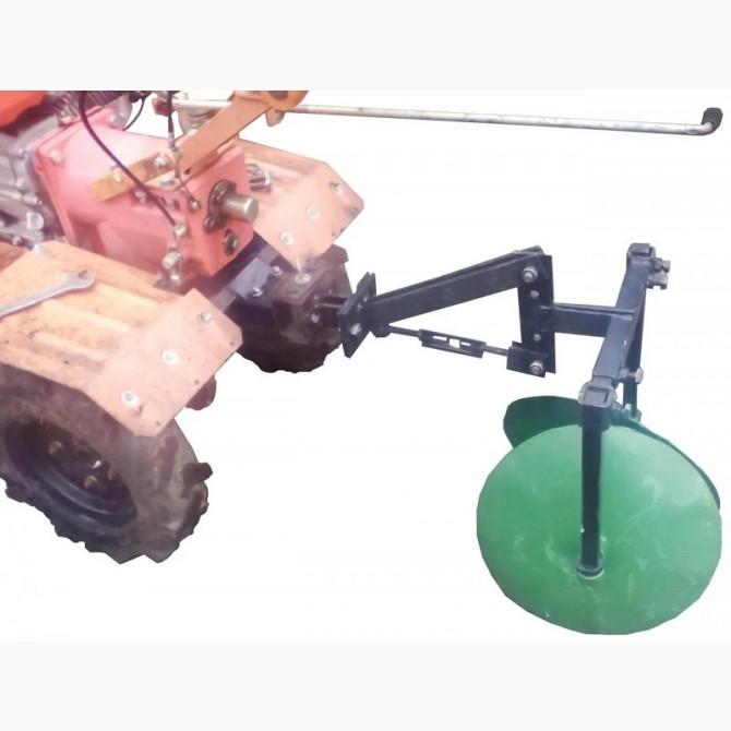 Окучник-дисковий призначений для створення бороз і виконання окучування. Його можна використовувати з мотокультиваторами або мотоблоками. Диски мають діаметр 300 мм і товщину 3 мм, вони кріпляться на точених втулках. Носик має товщину 2 мм і упор складається з круга діаметром 16 мм. Конструкція закр...