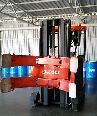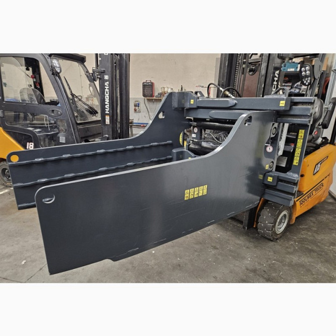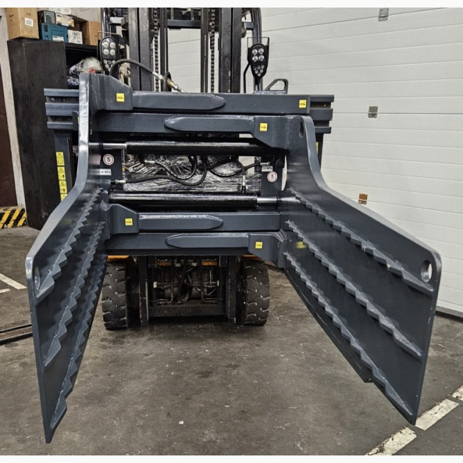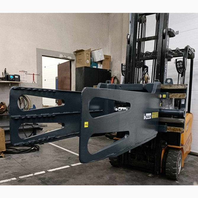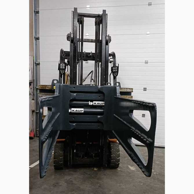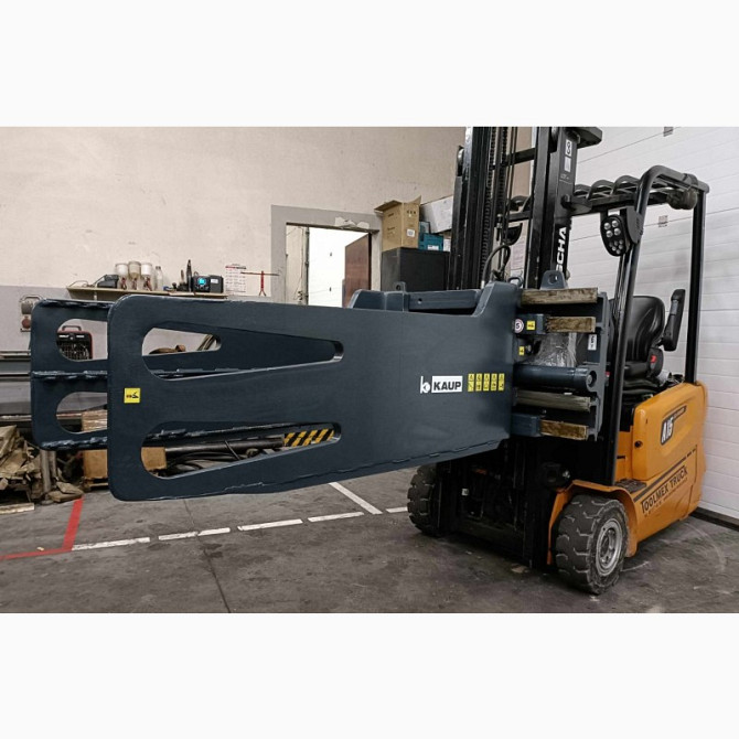 Захват для кіп, призначений для захоплення макулатури, призначений для вилочних підйомників з вантажопідйомністю від 2501 до 4999 кг. Виготовлений компанією Kaup, має вантажопідйомність 4500 кг та вагу 700 кг. Лапи завдовжки 1600 мм. Встановлений на вилочному підйомнику Linde H45D та має налічувану ...