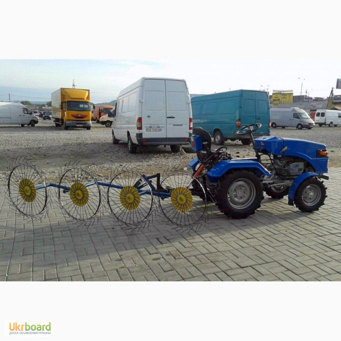 ПІДВИЩЕНА МІЦНІСТЬ РАМИ! ДОСТАВКА БЕЗ ПЕРЕДОПЛАТИ! Граблі-ворошилки 4-колісні та 5-колісні "Сонечко" є важливим навісним обладнанням для мінітракторів, яке виконує одночасно дві функції – розкидання сіна та його збирання. Конструкція, що складається з чотирьох колесно-пальцевих механізмів, розташов...