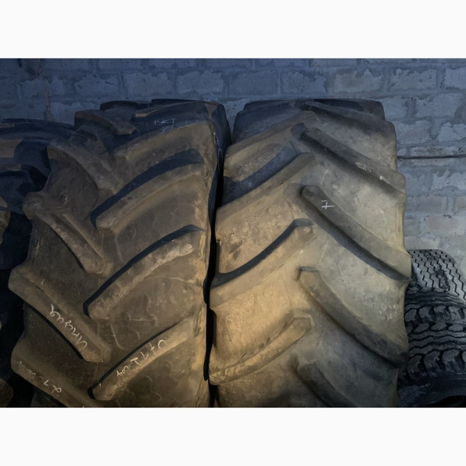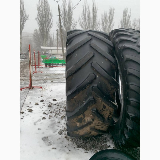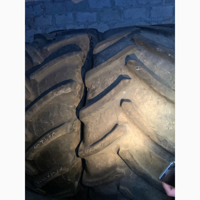 **Технічний опис шин для сільськогосподарських комбайнів** У наявності представлені шини відомих виробників Goodyear (США) та Starmaxx (Туреччина) з розмірами 800/65R32. **Goodyear 800/65R32:** - Країна виробник: США - Стан: відмінний - Особливості: одна латка на бічній поверхні, виконана для рем...