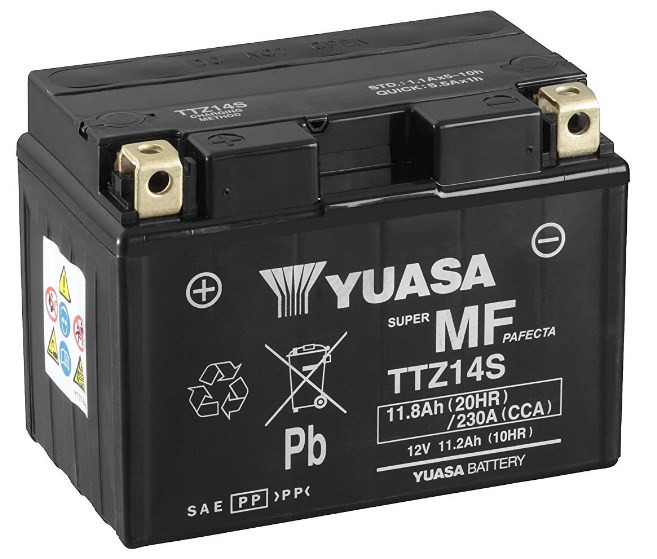 Акумуляторна батарея YUASA TTZ14S: технічний опис Акумуляторна батарея YUASA TTZ14S - це високоякісний елемент живлення, спеціально розроблений для використання в мотоциклах, скутерах та інших механізмах з двигунами внутрішнього згоряння. Характеристики: - Ємність: 11,8 А/год - Пусковий струм: 230...