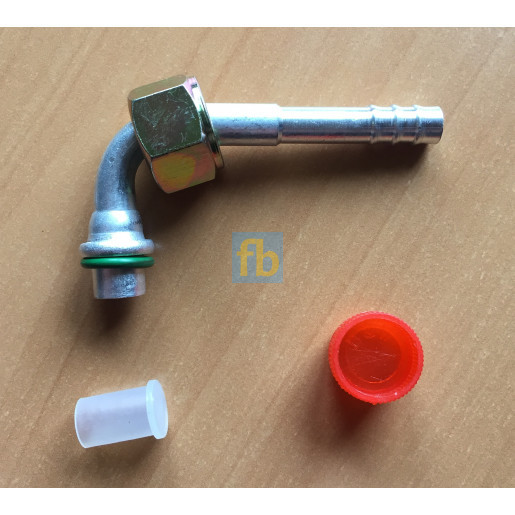 **Технічний опис:** *Фітінг Алюмінієвий кутовий 90° №6 гайка 3/4* Фітінг Алюмінієвий кутовий 90° №6 з гайкою 3/4 призначений для підключення кондиціонерних шлангів з внутрішнім діаметром 8 мм. Різьблення гайки відповідає стандарту 3/4-16UNF. Цей фітінг ідеально підходить для систем автомобільних к...