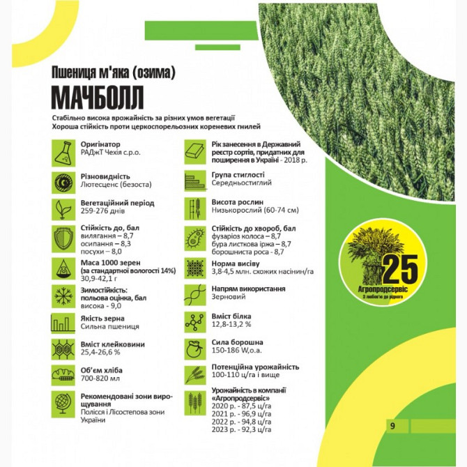 **Технічний опис продукту: Насіння сорту МАЧБОЛЛ** Представляємо Вашій увазі високоякісне насіння сорту МАЧБОЛЛ, яке допоможе вам досягти високих врожаїв та забезпечить стійкий ріст рослин. Наш продукт постачається з сортовим і посівним сертифікатами якості, що гарантує його відповідність всім стан...