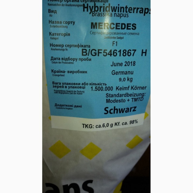 Продаж насіння фірмової озимої гірчиці сортів 2017-2018 років врожаю. Насіння сертифіковане та пройшло відповідну перевірку на схожість. Технічна інформація: - Сорт: озима гірчиця - Рік врожаю: 2017-2018 - Стан: сертифіковане - Перевірка на схожість: пройдена Можливі варіанти обміну включають авт...