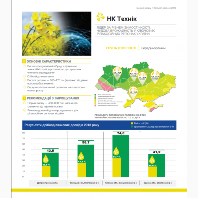 Насіння озимого ріпаку НК Технік є гібридом від компанії «Сингента» (Syngenta), який відзначається найкращими показниками у врожайності, зимостійкості та стійкості до стресових умов. Цей гібрид ідеально підходить для всіх регіонів України, де можна отримати вражаючі врожаї від 35 до 67 центнерів на ...