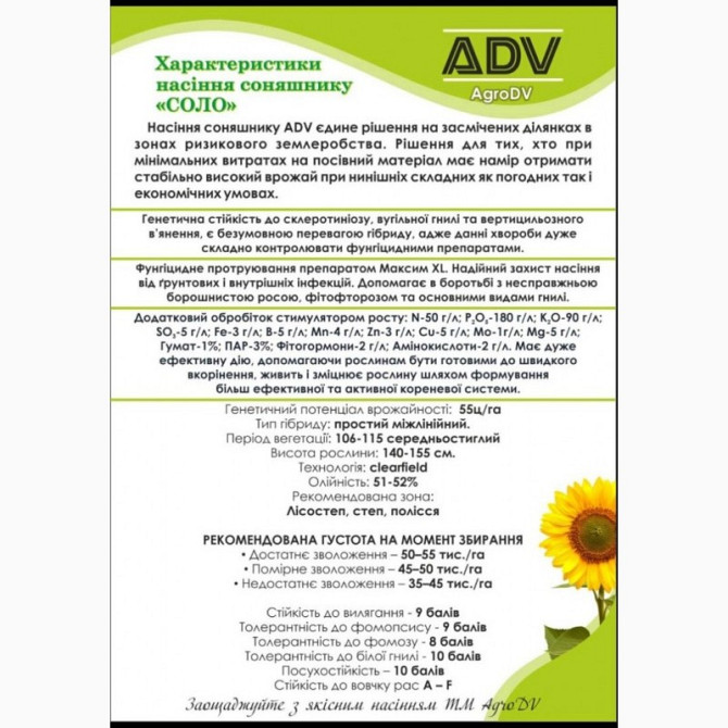 Насіння соняшнику та кукурудзи 2022 року врожаю з сертифікатами від провідних виробників: Limagrain, Syngenta, Pioneer, Brevant, Euralis, Lidea, Monsanto Syngenta. Серії насіння включають Suzuki HTS, Subaru HTS, Sumiko HTS, NK Neoma CL, SI Bacardi CLP, NK Adagio, SI Barbati CL, SI Arizona, Alcantara...