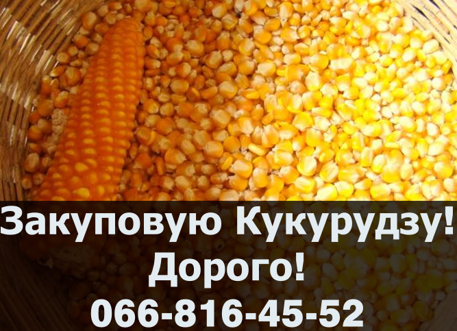 Закупівля кукурудзи за високими цінами! Наша компанія запрошує фермерські господарства до співпраці на постійній основі. Ми працюємо у Полтавській, Чернігівській, Черкаській, Харківській, Кіровоградській, Сумській та Київській областях. Ми гарантуємо високу ціну за кукурудзу та дбаємо про взаємови...