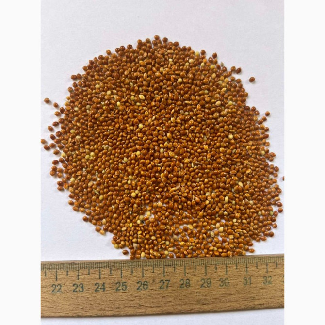 **Червоне просо** Червоне просо, також відоме як сорго червоне, є однорічною злаковою рослиною, яка має велике значення як кормова культура для тварин та як продукт харчування для людини. Ця рослина виростає до висоти близько 2-3 метрів, має вузькі листки та колоски, які містять зерно червоного к...
