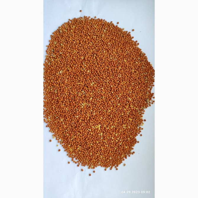 Продається червоне просо (Panicum miliaceum) в кількості 900 тонн. Виробник. Ціна договірна. Технічні характеристики: - Вологість: 13.2% - Засміченість: 1.8% - Зерновість: 3.7% Якість продукції можна оцінити за допомогою фотографій, які надані. Продукція не оброблялася пестицидами, зокрема гліфос...