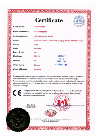 Зерновий сорт: Сівозміна CHILKAT FS-199 — зимовий трансгенний рапс: 1 мішок-5400 г-18 кг, мінімальна партія закупівлі 2 мішка. Увесь продукт сертифікований виробником, у спеціальній фірмовій упаковці з наявністю голограм та ультрафіолетових захисних знаків! Здійснюємо безкоштовну доставку по Україні...