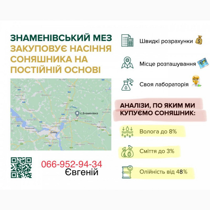 Постійно купую насіння соняшнику. Продукт доступний для самовивозу або доставки. Ціни на ринку конкурентні. **Технічний опис продукту:** Нахідка для любителів смачних та корисних перекусів - насіння соняшнику вирощене в екологічно чистих умовах. Кожна крихтинка продукту містить велику кількість ві...