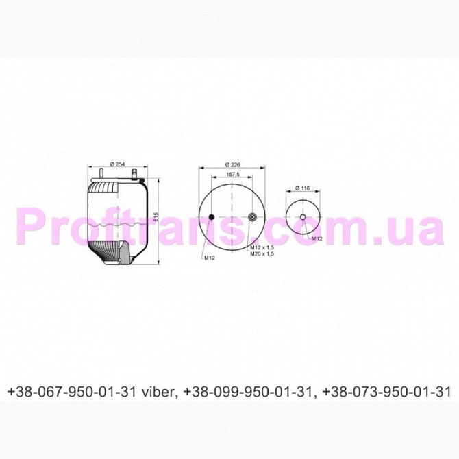 Пневмоподушка 941MB T10065.Proftrans.com.ua нові й уживані запчастини до вантажних автомобілівman, mercedes, iveco, renault, daf, Volvo та запчастини до спецтехнікиjcb, volvo, manitou, caterpillar, terex, case, komatsu, jlд, mer Proftrans запчастини.