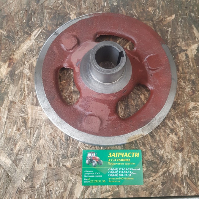 Шків колінвалу для трактора Т-40. Унікальне маркування Д37Е-1308157-А2. Встановлюється на колінчастий вал трактора Т-40 з метою передачі обертання для подальшого перетворення в електрику за допомогою генератора.