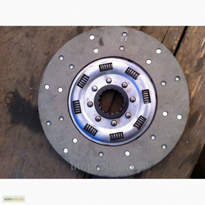 Диск зчеплення ЮМЗ призначений для короткочасного роз'єднання колінчастого валу дизеля та провідного валу коробки, запобігання трансмісії від перевантажень. Номер за каталогом деталі 45-1604050.
