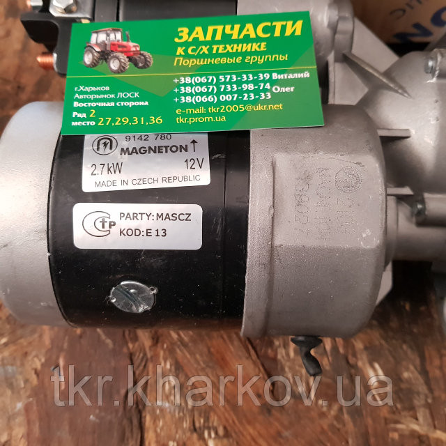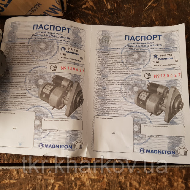 Стартер редукторний МТЗ, Т-40, 16, 25 Magneton Чехія Перевагами стартера з редуктором є більш висока потужність, більший пусковий момент, на 48% менша маса, покращена стартова здатність. Номер за каталогом деталі 9142 780.Основні параметри стартера:Напруги 12В Потужність 2, 7 кВтМирцячий момент 35 Н...