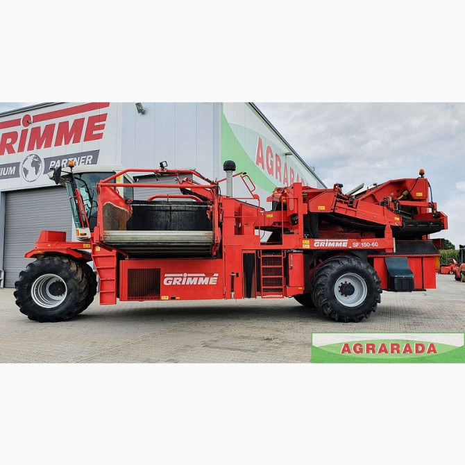 **Технічний опис картоплезбирального комбайну GRIMME SE 150-60 UB** Пропонується до продажу картоплезбиральний комбайн GRIMME SE 150-60 UB, випущений у 2008 році. Цей комбайн обладнаний бункером на 7,5 тонн, що забезпечує ефективне збирання картоплі. Схема копання складає 2 х 75 см, що дозволяє шви...