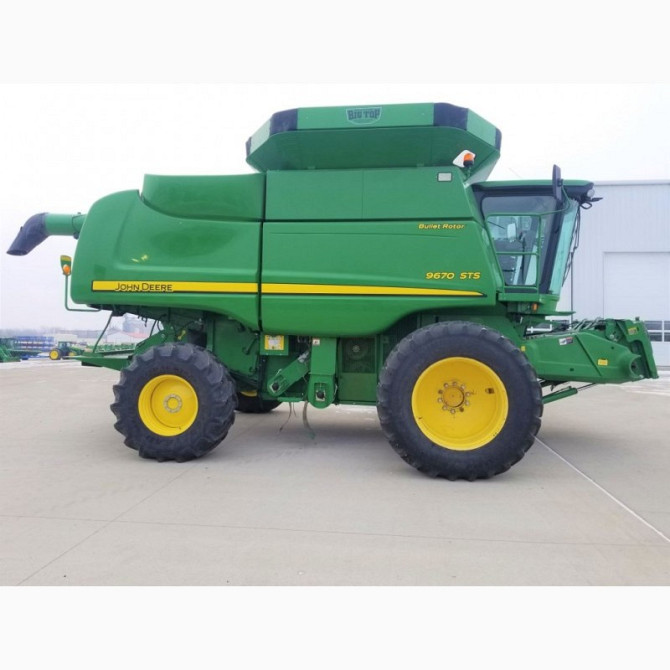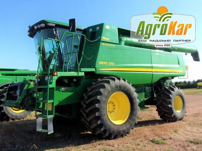 John Deere9870 STS - 2008 рік. Жниварка з роторною системою обмолоту. John Deere9870 STS є сучасною жниваркою, призначеною для ефективного збирання врожаю. Оснащена роторною системою обмолоту, ця модель забезпечує високу продуктивність та якісний обмолот зерна. Технічні характеристики: - Система с...