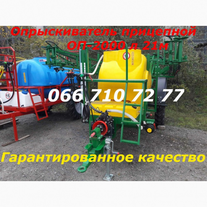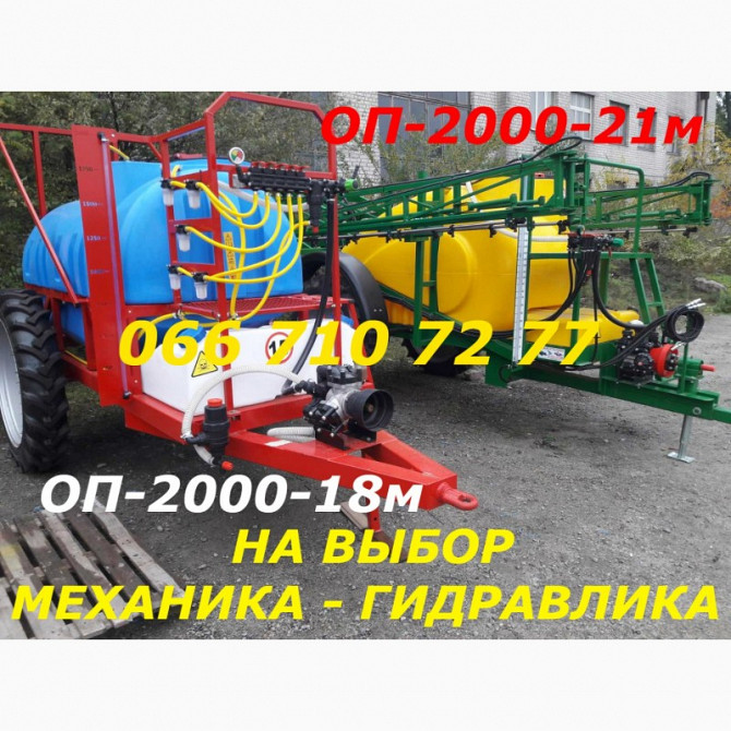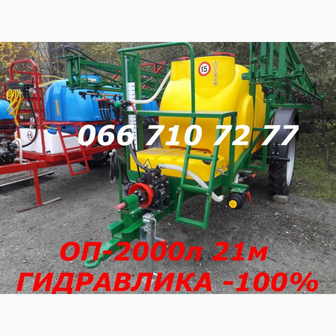 Повна гідравлікаоприскувачОП причіпний ОП-2000 зі штангою 21-18 м., гідравлічна штанга призначень для обробки польових культур робочими рідинами пестицидів при боротьбі з бур'янами, хворобами та шкідниками. Наобприскувач встановлюютьсякомплектуючі провідних польських та італійських виробників