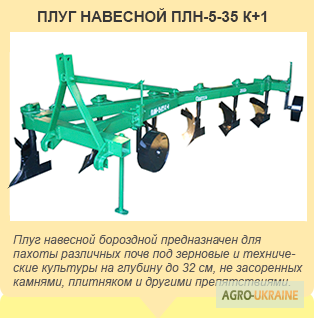 Плуг ПЛН 3-35 є продуктом, що виготовляється з одного цілого профільного трубного виробу розміром 100х100х8 мм з підвищеним кутом нахилу. Він комплектується півобертовим відвалом та розгалужувачем. ПЛН 3-35 призначений для обробки ґрунту на глибину до 30 см з шириною захоплення 1,05 м. Цей плуг вико...