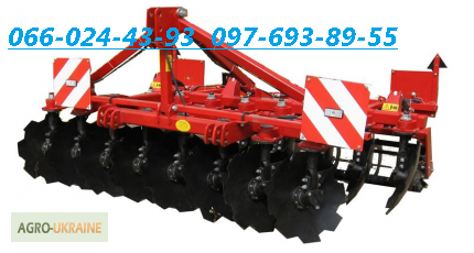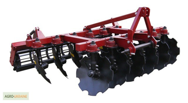 **Технічний опис навісного дискового агрегата для обробітку ґрунту** Навісний дисковий агрегат призначений для обробітку ґрунту в сільському господарстві. Цей агрегат має ширину захвату 2,6 метра, що дозволяє ефективно обробляти великі площі. Продуктивність цього агрегата становить від 1,9 до 2,6 г...