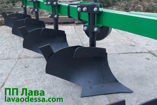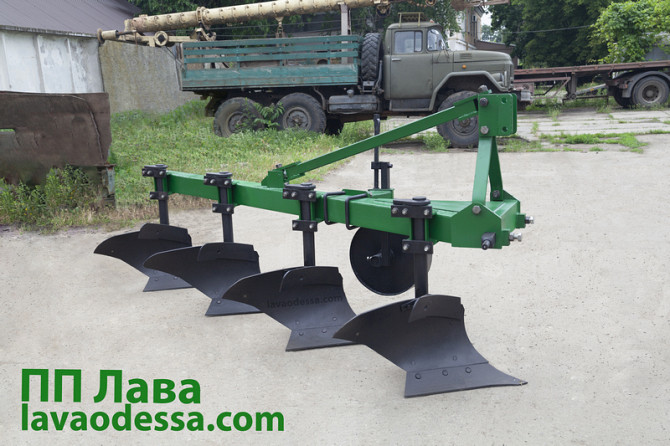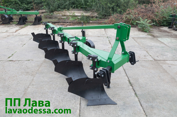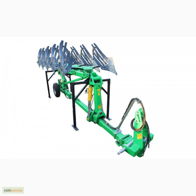 ### Технічний опис плуга для використання в сільському господарстві #### Технічні характеристики: - **Глибина пахоти:** від 18 до 30 см - **Ширина захвату:** від 1,75 до 2,5 м - **Кількість корпусів:** 5 шт - **Тип корпусів:** полувинтові з углоснимами - **Відстань між корпусами:** 85 см - **Висот...