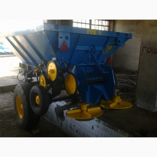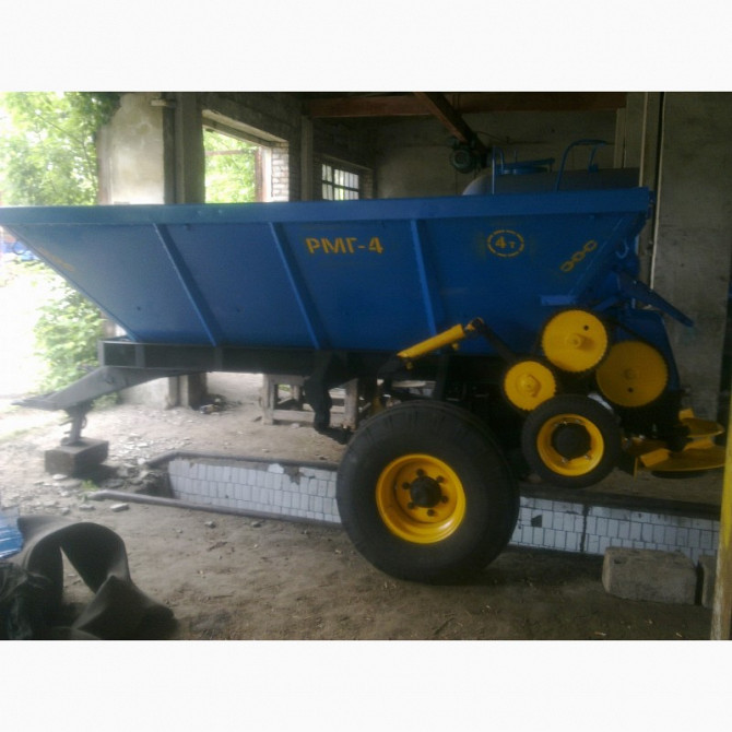 Характеристика Розкидач мінеральних добрив 1-РМГ-4 призначений для суцільного поверхневого внесення Твердих Мінеральних Добрив, Піску, Крейда в тому числі при русі агрегату по технологічній колії. та дозуючого пристрою, встановленого на задній стінці кузова. Привід дисків, що розкидають, здійснюєтьс...