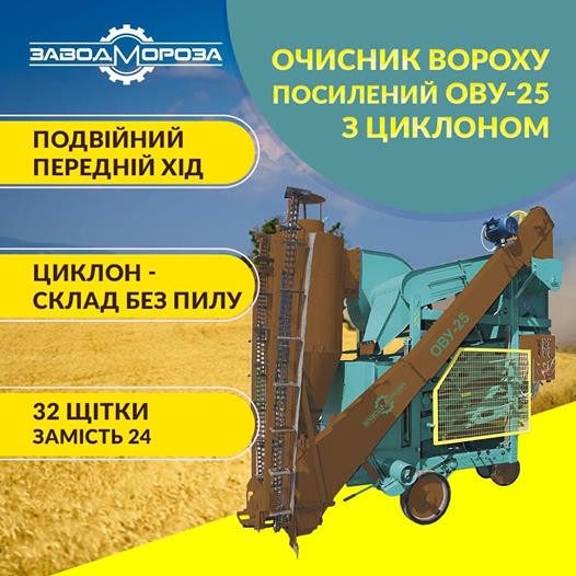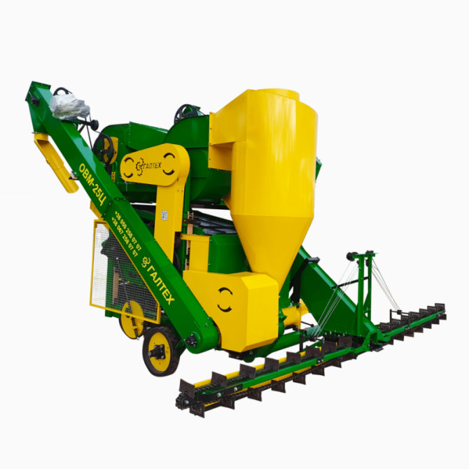 Самохідна зерноочисна машина ОВС-25Ц з циклоном, виробництва заводу сільгоспмашин, є високоефективним пристроєм для очищення зернового вороху. Ця машина призначена для високоякісного та високопродуктивного очищення зернових культур, таких як колосові, круп'яні, зернобобові, олійні культури, кукурудз...