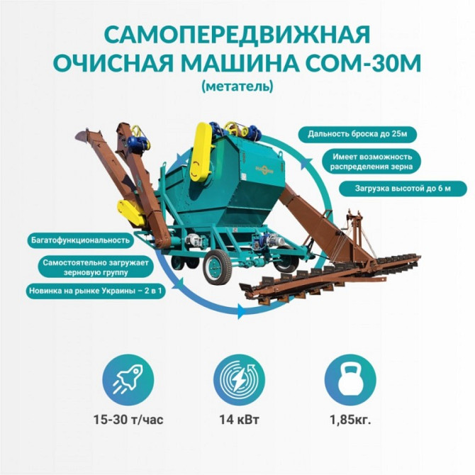 Самопересувна очисна машина СОМ-30М (метач) - інноваційний продукт, який вирізняється на ринку України як унікальне поєднання функцій зерноочисника і зернонавантажувача. Ця багатофункціональна модель дозволяє використовувати лише одну технічну одиницю для проведення операцій завантаження, очищення, ...