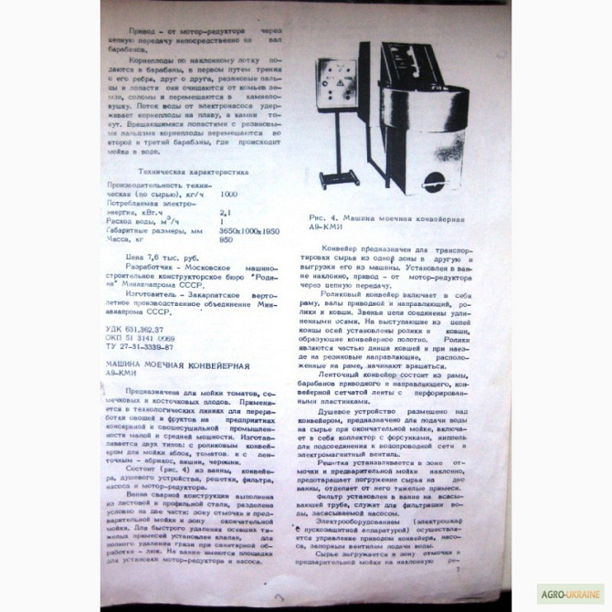 Машина для мийки томатів, огірків, насінинових та кісточкових плодів призначена для використання в технологічних лініях переробки овочів та фруктів на підприємствах консервної та овочесушільної промисловості малої та середньої потужності. Її продуктивність становить 1000 кг/год. Машина складається ...