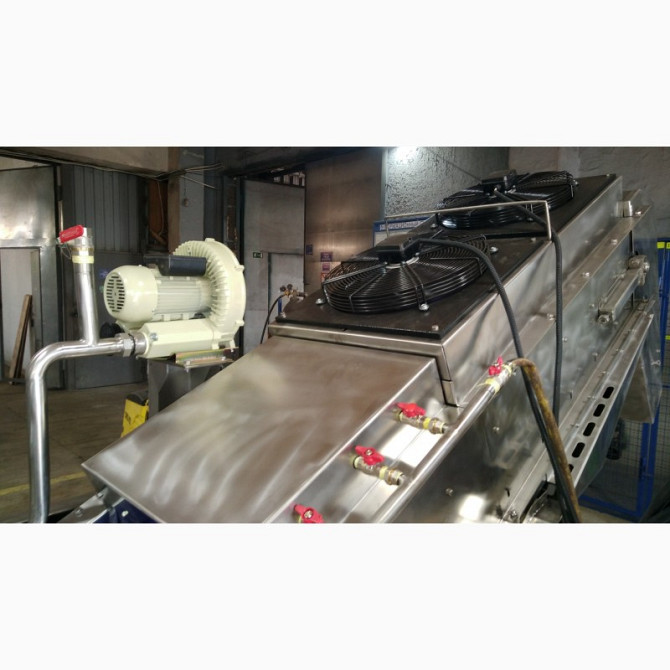 Промивний пристрій з харчової нержавіючої сталі з відводним конвеєром є унікальним рішенням для обробки ягід. Лента конвеєра виготовлена з модульної харчової стрічки, що забезпечує надійність та довговічність. Промивання здійснюється за допомогою системи барботажу, яка подає повітря в воду, створююч...
