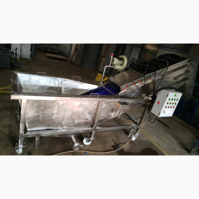 **Технічний опис: Барботажна моечна машина для миття овочів та фруктів** Барботажна моечна машина є незамінним обладнанням для підприємств харчової промисловості, які спеціалізуються на обробці овочів та фруктів. Цей тип машин відмінно справляється з ефективним миттям і очищенням продукції від забр...