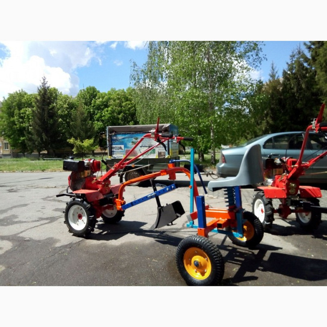 Адаптер для мотоблоку з переднім кріпленням для водія, а також передбачена можливість кріплення обладнання ззаду адаптера. Пневматичні колеса та підпружинене сидіння забезпечать комфорт під час роботи. Технічні характеристики: - Матеріал: сталева конструкція з покриттям проти корозії - Розміри: 120...