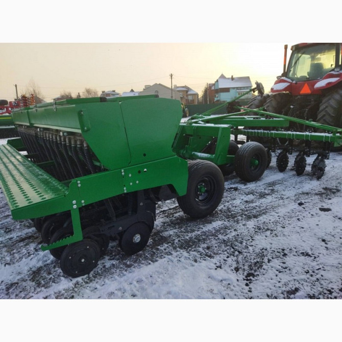 Навісна зернотукова сівалка з дисковими сошниками і котушковим висіваючим апаратом призначена для ефективного посіву різних видів культур, зокрема зернових (пшениця, жито, ячмінь, овес), бобових (горох, квасоля, соя, сочевиця, боби), льону, а також інших культур, схожих за розмірами насіння та норма...