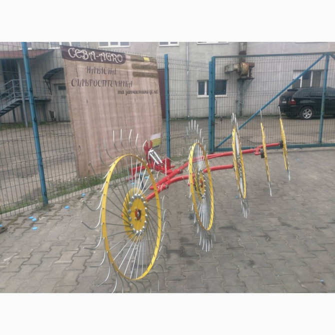 У продажу представлені нові граблі з сонечком на 4 та 5 коліс. Ці сільськогосподарські інструменти використовуються для збирання сіна, соломи та інших рослинних культур. Граблі оснащені високоякісними металевими зубцями, що забезпечують ефективне збирання матеріалів. Технічні характеристики: - Мате...