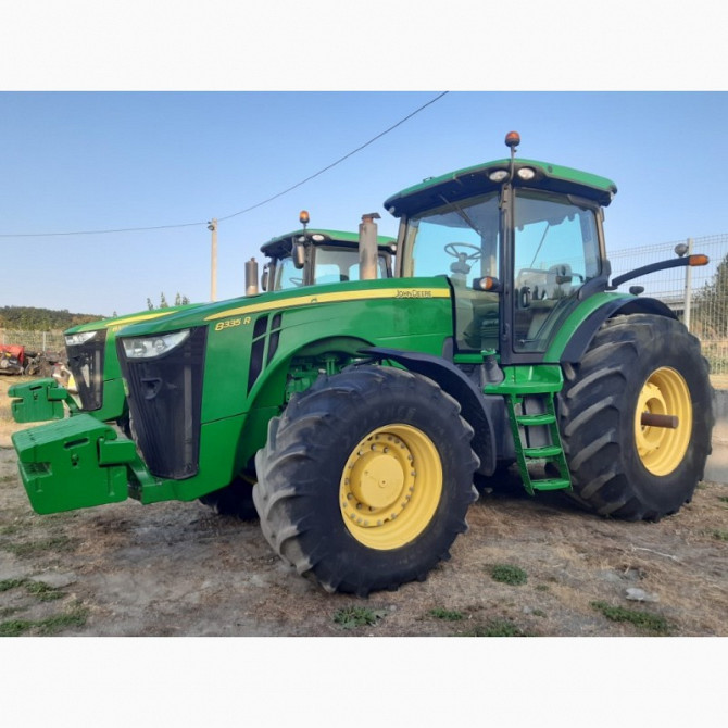 Технічні характеристики: трактор John Deere8335RМодель John Deere 8335RРік випуску2015Напрацювання мото/год9163Двигун John Deere 9,0 L, 6-циліндрів, дизельМаксимальна потужність трактора kW/к.с. 16/4Шасі4WDПотужність ВВП , об/х1000Комплектація балансирами, кгП-1000З - 1250Об'єм паливного бака, л714Ш...