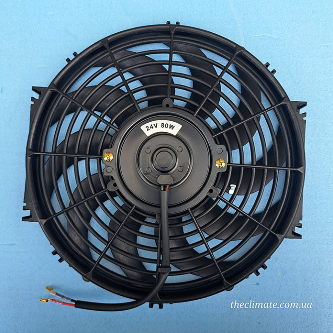 Вентилятор кондиціонера є необхідним елементом системи кондиціювання повітря в транспортних засобах та сільськогосподарській техніці. Цей конкретний вентилятор має такі технічні характеристики: діаметр лопатей – 12 дюймів, напруга живлення – 24 Вольти, потужність – 80 Ватт, тип руху – штовхаючий (pu...
