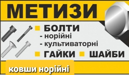 Виробництво та продажМетизи норійні:Болти М8х32, М10х40,гайки М8, М10, шайби сферичніКовші норійні:УКЗ-10-125, 20-150, 50-160, 100-260, 175-390