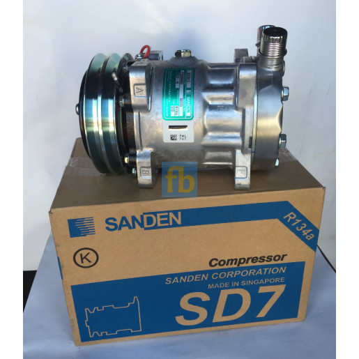 Компресор універсальний SANDEN 7L15 8208HTШків 132мм A2, з горизонтальним розташуванням виходів, вихід -3/4-16UNF (O-ring) вхід-7/8-14UNF (O-ring), напруга живлення 12В, (фреон R-404a)