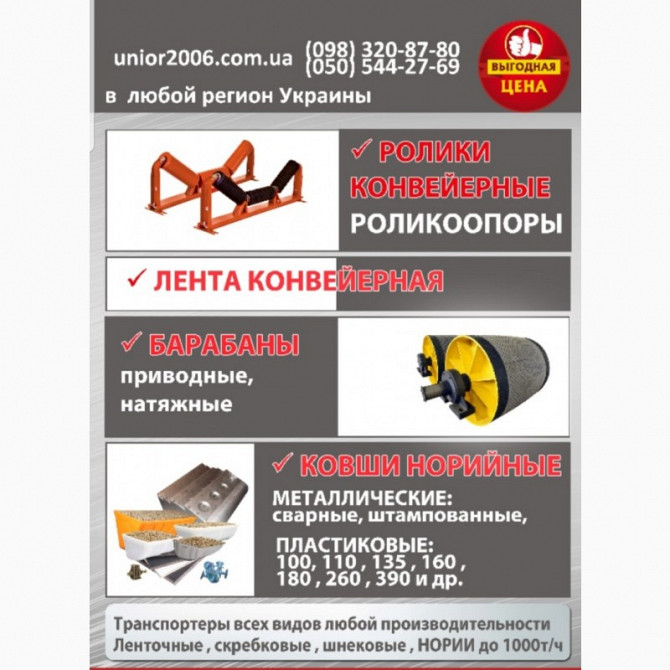Конвеєр стрічковий для транспортування зерната інших сипучих вантажів. Конвеєри комплектуються імпортними моторами-редукторами та виносними підшипниковими вузлами. -87-80 Наталія