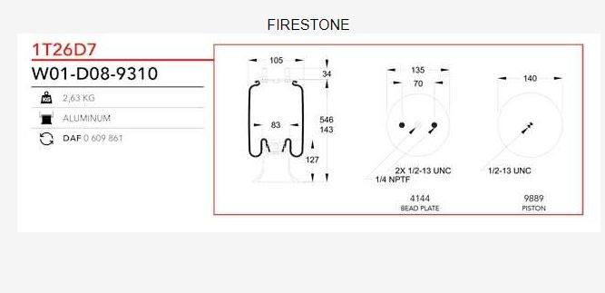 В наявності Подушка Firestone W01-D08-9310 /daf 0609861/1T26D7 Детальніше Оригінал! Ціна із ПДВ!