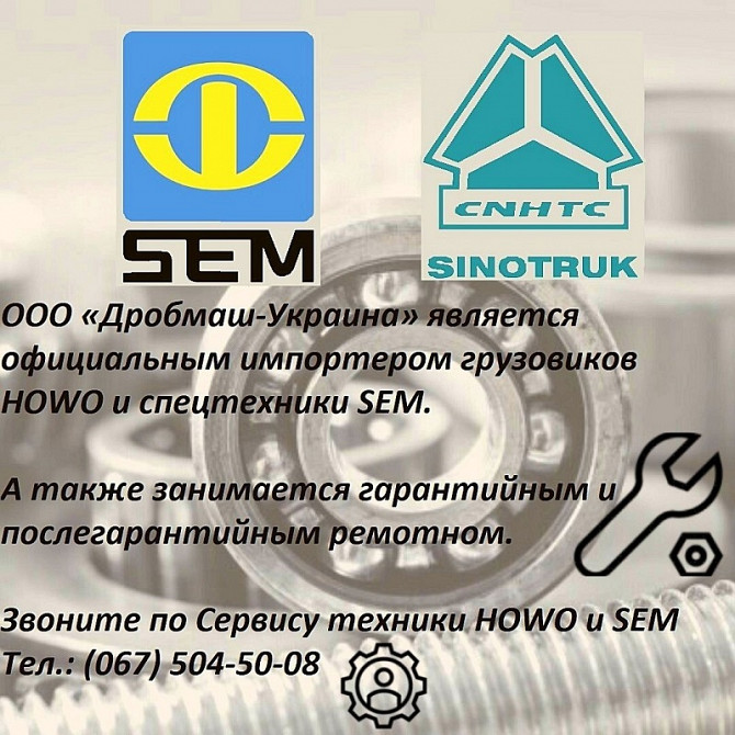 ТОВ «Дробмаш-Україна» є офіційним імпортером вантажівок HOWO від заводу Sinotruk, так само дилером по всій лінійці техніки SEM, від заводу Caterpillar Qingzhou LTDА також займається гарантійним і післягарантійним ремонтом цієї техніки, маємо склад запасних частин і дві виїзні бригади. так і за місце...