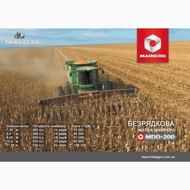 **Технічний опис жатки для комбайнів** Цільове призначення: жатка для комбайнів призначена для збирання зернових культур. Технічні характеристики: - Кількість рядів: 12 - Ширина міжряддя: 700 мм - Ширина жатки: 8,4 м - Можливість адаптації під будь-який комбайн Гарантія: 1 рік Опис продукту: Ж...
