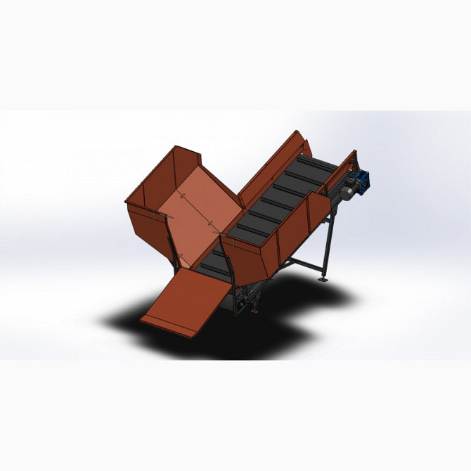 Конвеєр з бункером: Конвеєр з бункером є стаціонарним, похилим типом конвеєра, призначеним для транспортування матеріалів на великі відстані. Його довжина по вісям барабанів становить 2800 мм, ширина стрічки - 800 мм, а висота завантаження - 1250 мм. Стрічка конвеєра виготовлена з типом БКНЛ 5мм...